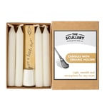 Ensemble de 8 bougies blanches et leur bougeoir en céramique.