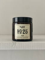 Nr 25 est un parfum chaleureux qui évoque de joyeux souvenirs de Noël. Rappelant de somptueux desserts et fruits, tels que l'orange et l'amande avec en son cœur de la cannelle, du clou de girofle épicé et du miel, ce parfum chaud et délicieux évoque les arômes et le confort de la vanille, du malt et de la noix de coco.