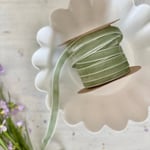 Un magnifique ruban en velours au coloris vert sauge, pour emballer vos cadeaux, dresser une jolie table, nouer un bouquet de fleurs, décorer un bougeoir...